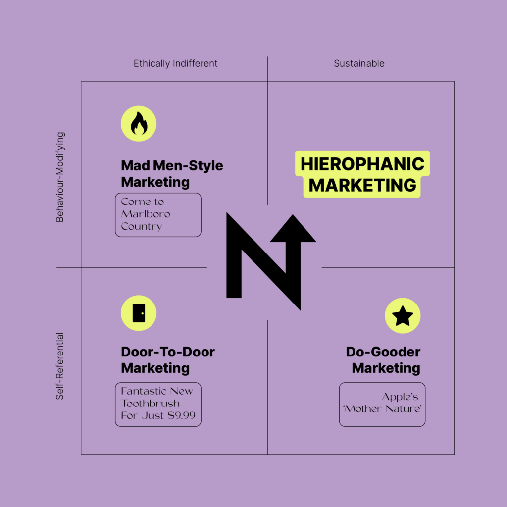 Hierophanic marketing completes our 2×2 matrix as a type of marketing that is both sustainability-oriented and behaviour-modifying.