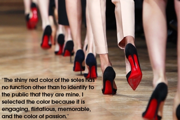 “I had a girl working with me, trying on the shoes so when she was not trying on shoes, she sort of had nothing to do, so she was sort of waiting, and, so she was doing her nails, at that time… and I thought, why, this black has to be the red! So I grabbed her nail polish, and painted the soles” Christian Louboutin, cited in How Fashion Works.
