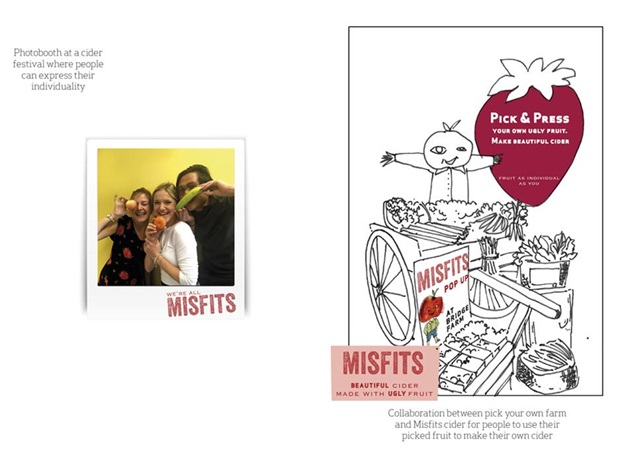 The brand is very social, and instantly took to snapchat. Here consumers could use the snapchat filter to turn themselves into a piece of Misfits’ fruit. As well as having photo booths at cider festivals, where they encouraged people to express their individuality as well as collaboration between pick your own farms and Misfits Cider.