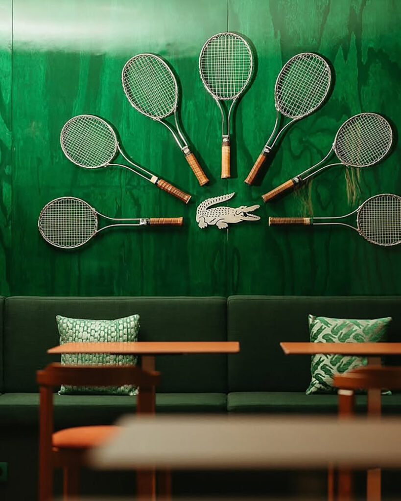 Café Lacoste is more than just a place to eat; it’s a powerful tool for storytelling and for reinforcing brand identity. The café brings Lacoste’s tennis heritage to life by turning its visual codes and distinctive style into a complete lifestyle experience.