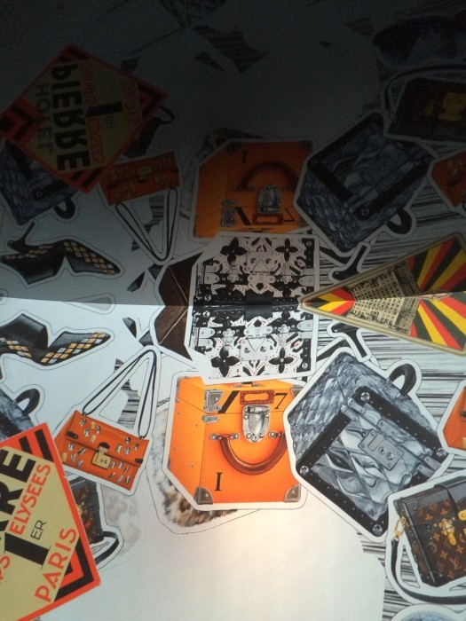 Thrifty cynic that I am, I kept waiting for the catch – “bet they’ll rinse me for a donation”, “bet there’ll be a gift shop”. There was a gift shop, but nothing like I expected. There was a huge wall of stickers – letters and representations of pieces from the collection. You got to choose two, for free, and they were handed over in a little branded plastic bag. You could own something from Louis Vuitton – it was yours and all you gave was your time. When I thought it couldn’t possibly get better, an extremely handsome man wandered over and asked if I’d like a free poster. Obviously this poster was amazing quality and gloriously foiled.