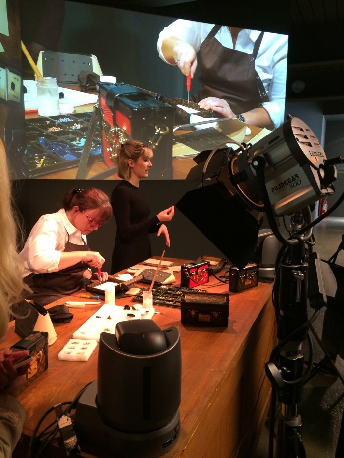 There was a laser room, a huge architectural room – there was something anyone with a pulse could engage with. I was particularly impressed with the live workshops – at two different stations, you could watch someone making a mini Louis Vuitton clutch – the detail was projected on the wall behind the action.