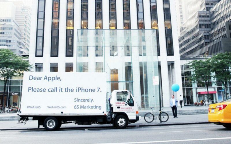 Registered under the business name 6S Marketing Incorporation, the firm sent out a billboard on a truck in front of the Apple Store in New York City. It came with a straightforward message: “Dear Apple, Please call it the iPhone 7. Sincerely, 6S Marketing #WeAre6S, WeAre6S.com.”