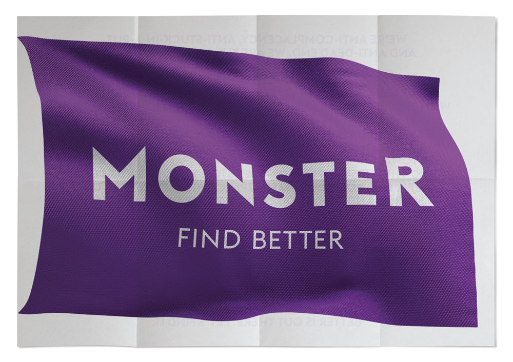 Branding firm Siegel+Gale came up with a new logo and visual identity that refreshes the brand and distinguishes Monster from its competitors. The new logo represents a flag, which is the symbol of the individual achievement of finding better: