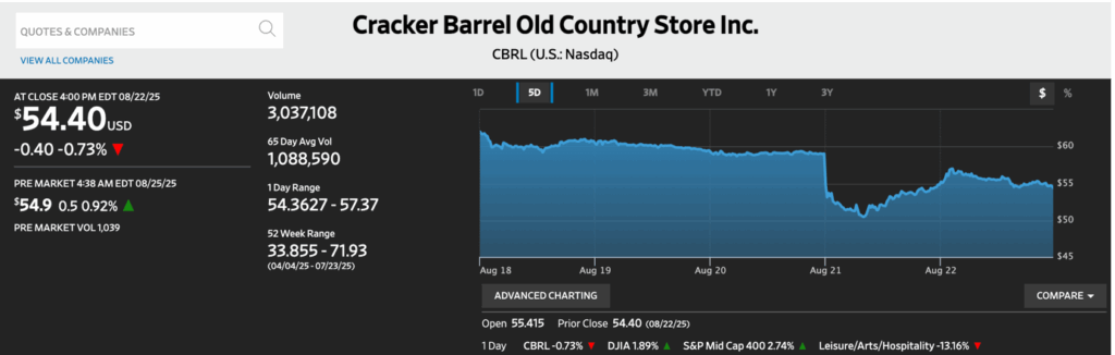 - Following the announcement, Cracker Barrel’s stock dropped over 11% by Thursday, August 21st, 2025.