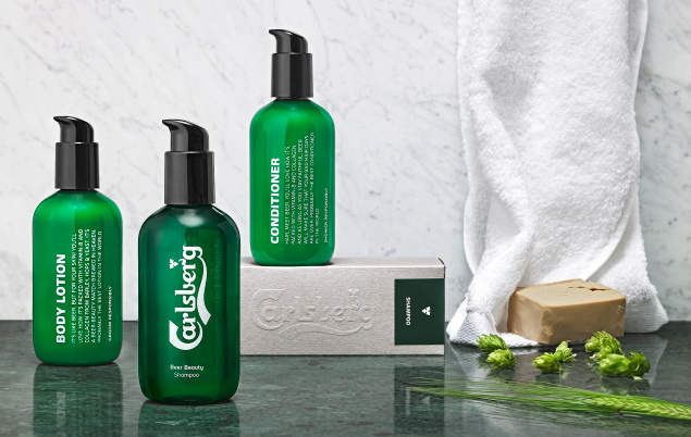 Carlsberg teamed up with cosmetic producer Urtegaarden to create a limited edition series of male grooming products: shampoo, conditioner and body lotion.