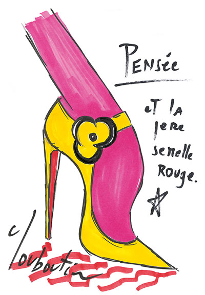 “I had a girl working with me, trying on the shoes so when she was not trying on shoes, she sort of had nothing to do, so she was sort of waiting, and, so she was doing her nails, at that time… and I thought, why, this black has to be the red! So I grabbed her nail polish, and painted the soles” Christian Louboutin, cited in How Fashion Works.