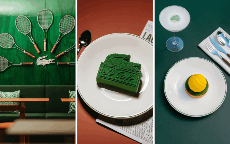 “The already iconic crunchy pistachio dessert, the “Crocodile,” the “Terre battue” tiramisu, and the Victorine tart — René Lacoste’s favourite dessert — are must-tries… as are the eight exclusive cocktails.”