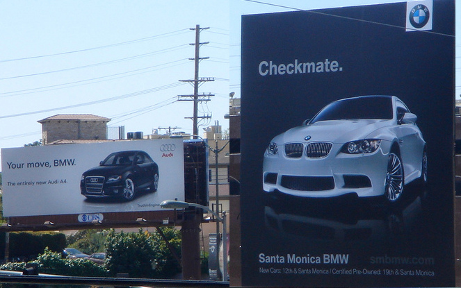 The first involves Audi and BMW in one of the most famous examples of billboard rivalry, which has played out over many of the companies’ adverts.