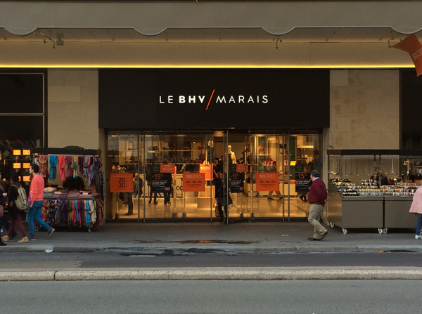 BHV stands for Bazaar de l’Hôtel de Ville, because it is located near the city hall in Paris (Place de l’Hôtel de Ville) in the 4th district. For years, the Marais has been one of the most attractive areas of Paris, with many artists, fashion designers, cafes, art galleries and bars. BHV has now chosen to include the Marais in its brand image to become Le BHV Marais.