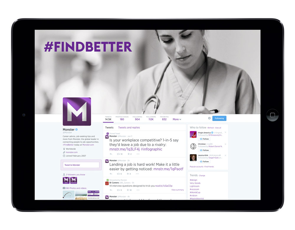 In order to promote Monster’s new expanded ability to connect employers and candidates together, the company wanted to refresh its brand identity along with the concept of “Find Better”.