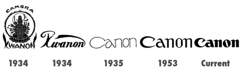 The first two logos were inspired by the name of the commercialized cameras, “Kwanon”, and the very first logo also included the image of the goddess with her many arms surrounded by flames. Since the name of the brand was changed to “Canon”, the company has designed several versions of the logo. The unified version was created in 1953, and the logo used today was created in 1956, after several refinements.