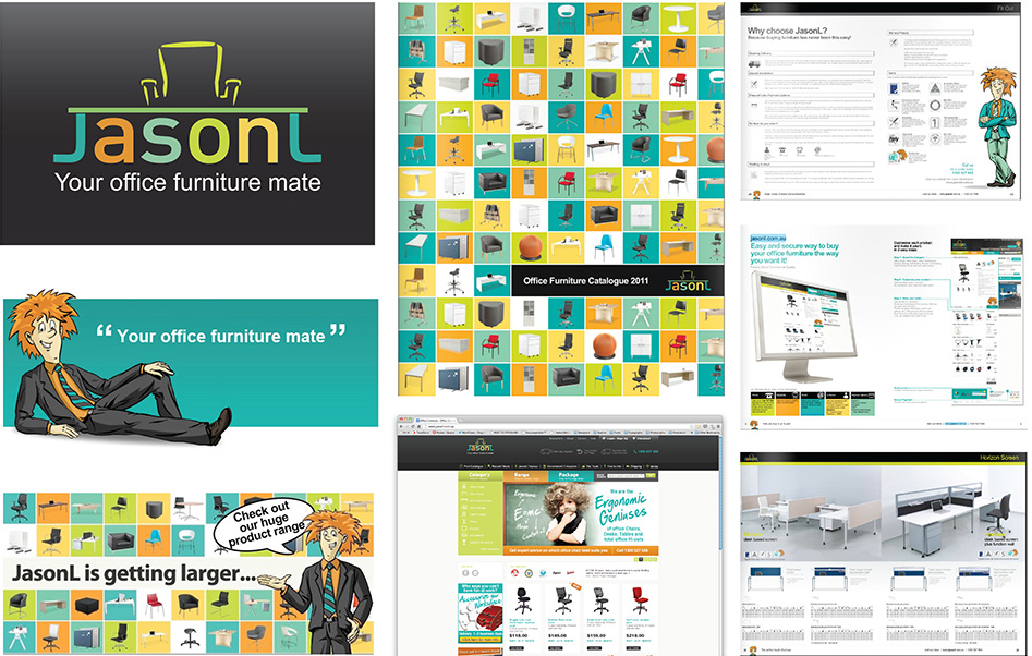 The original brand visual representation reflected the brand’s personality but didn’t mirror the established brand Jason.l has become. For instance, the original mascot was not perceived as very professional. The agency therefore replaced it with a series of modern office furniture characters with a friendly and fun attitude. “These form the basis of an identity system that not only reflects what Jason.l sells, but the way they do business – a little out of the ordinary.” (cited in Rebrand).