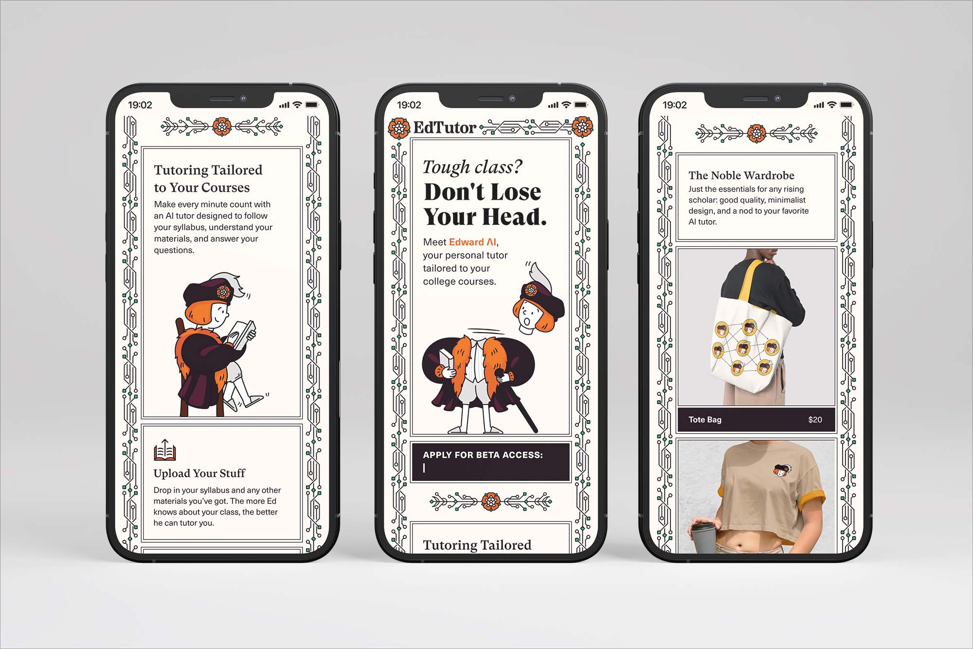 Developing ‘Edward Tudor’ as our mascot became a pivotal strategy. Inspired by the wordplay “EdTutor” to “Ed the Tudor,” we aimed to set EdTutor apart from its competitors and add a relatable aspect to the AI-driven solutions. Edward Tudor, envisioned as a blend of historical charm and modern appeal, was designed to embody curiosity, knowledge, and friendliness, making the AI app more personable.